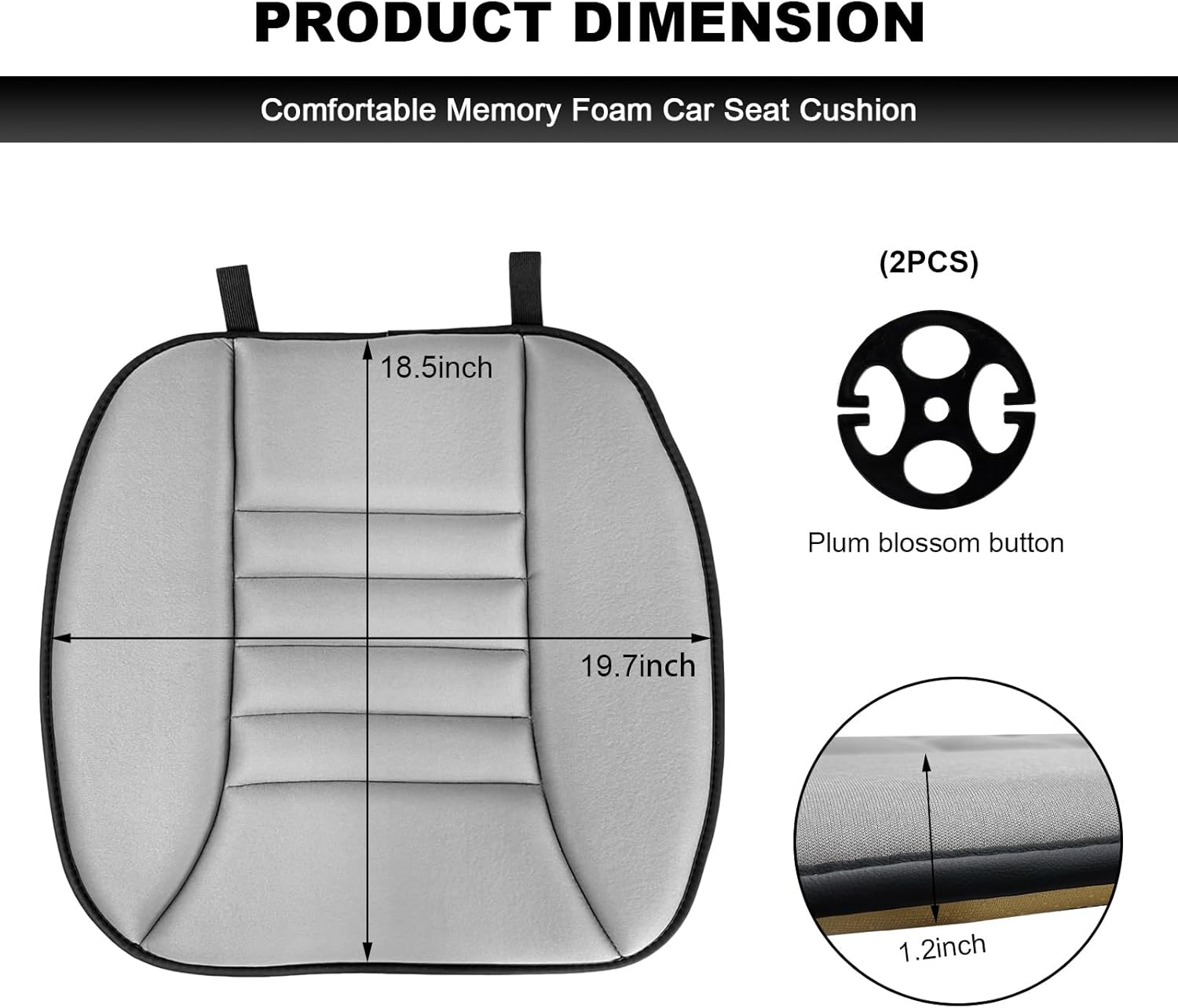 • Ideal Size: Measuring 18.5 × 19.7 inches, this cushion is designed to fit most car seats across various vehicle types. Its versatile design makes it equally suitable for office chairs, home seating, and more. Lightweight and portable, it provides comfort wherever you need it