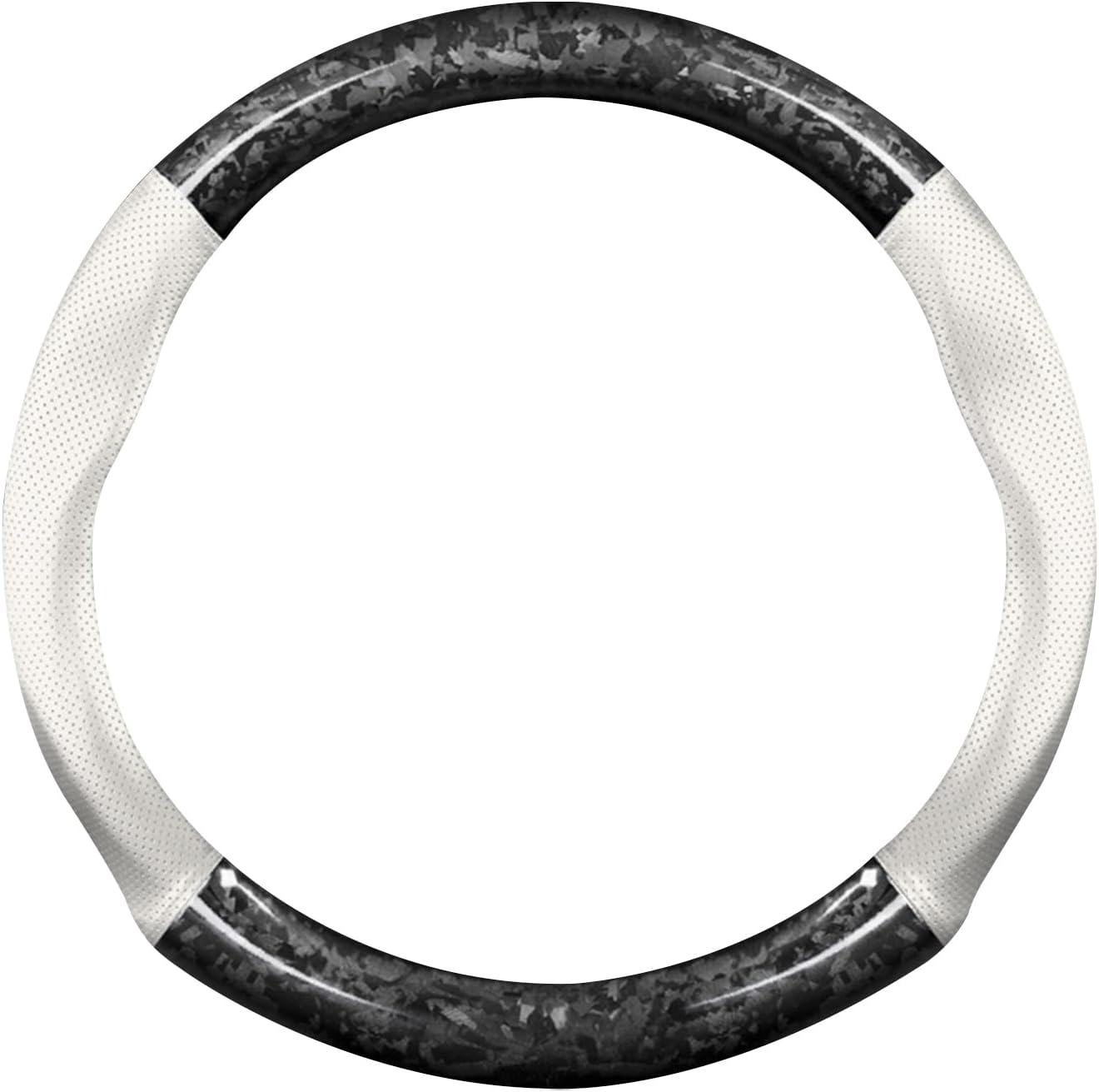 Car Steering Wheel Sleeve, Round Forged Carbon Fiber and Leather Material Steering Wheel Sleeve, 37-38cm/14.5-15inch, Non-Slip, Soft, Breathable, Sports Style