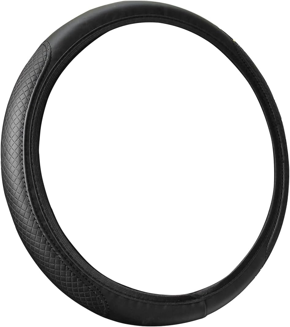 Leather Car Steering Wheel Cover for Men Women, Elastic, Breathable Anti-Slip, Universal 15 inch, (Black1)